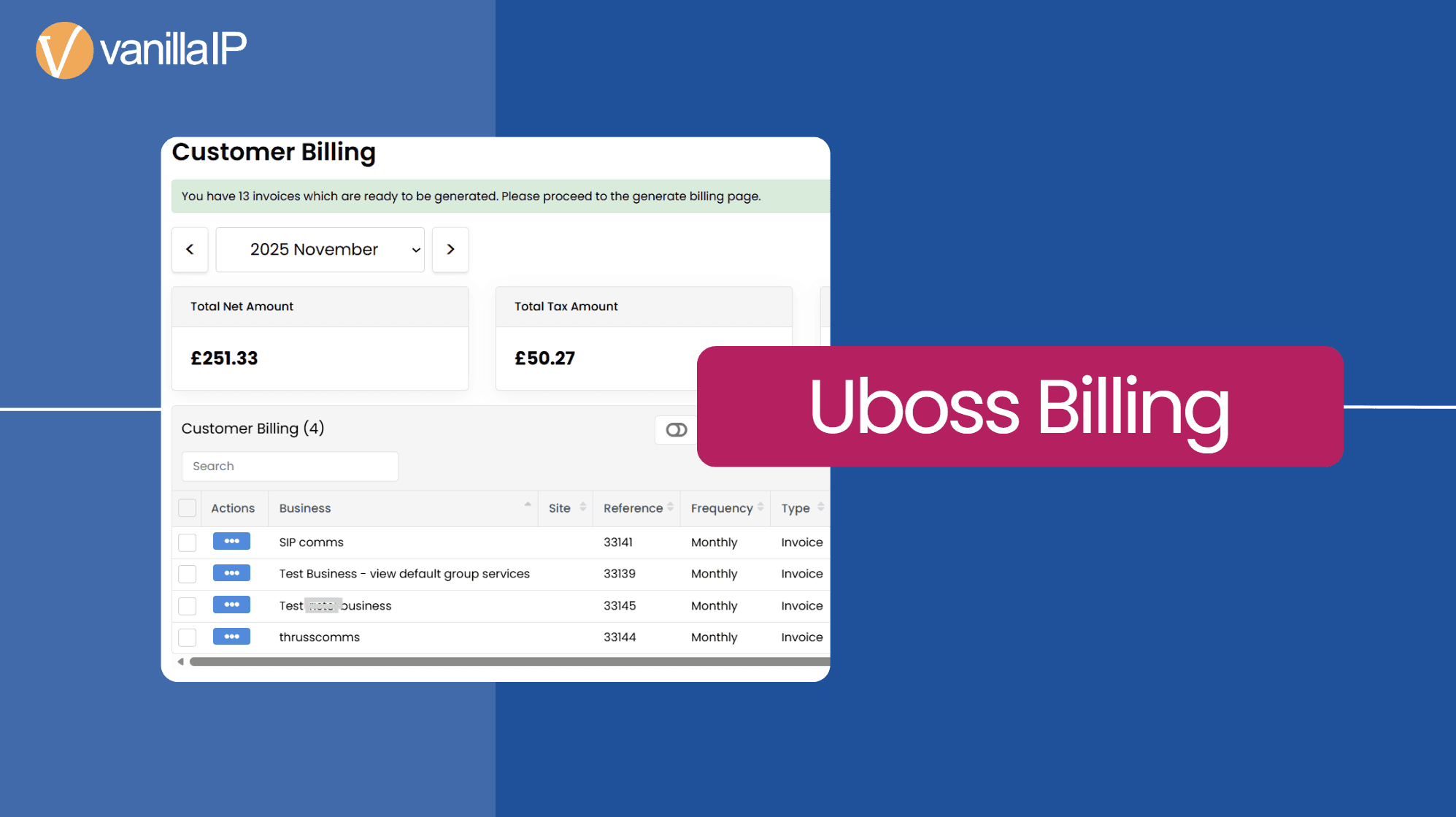From VOIP to Microsoft 365, Broadband to hardware VanillaIP provides a full OSS/BSS Eco system, Uboss. Whether selling through managed Sales Teams or Online we provide the applications and services to successfully sell and manage ongoing SaaS & Communication services into both the B2B and B2C marketplace.