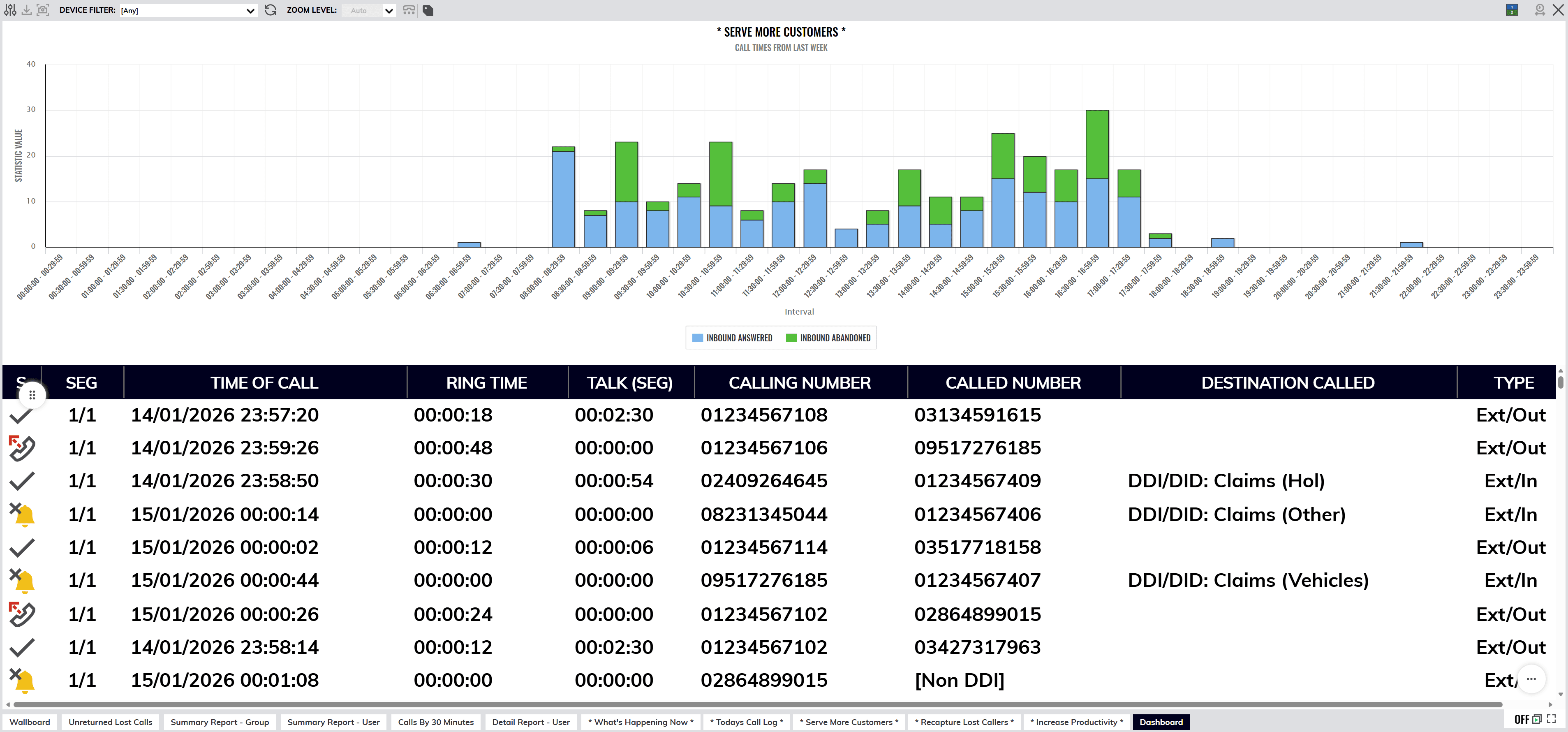 Improve customer experience by identifying peak demand periods, abandoned calls and bottlenecks.
