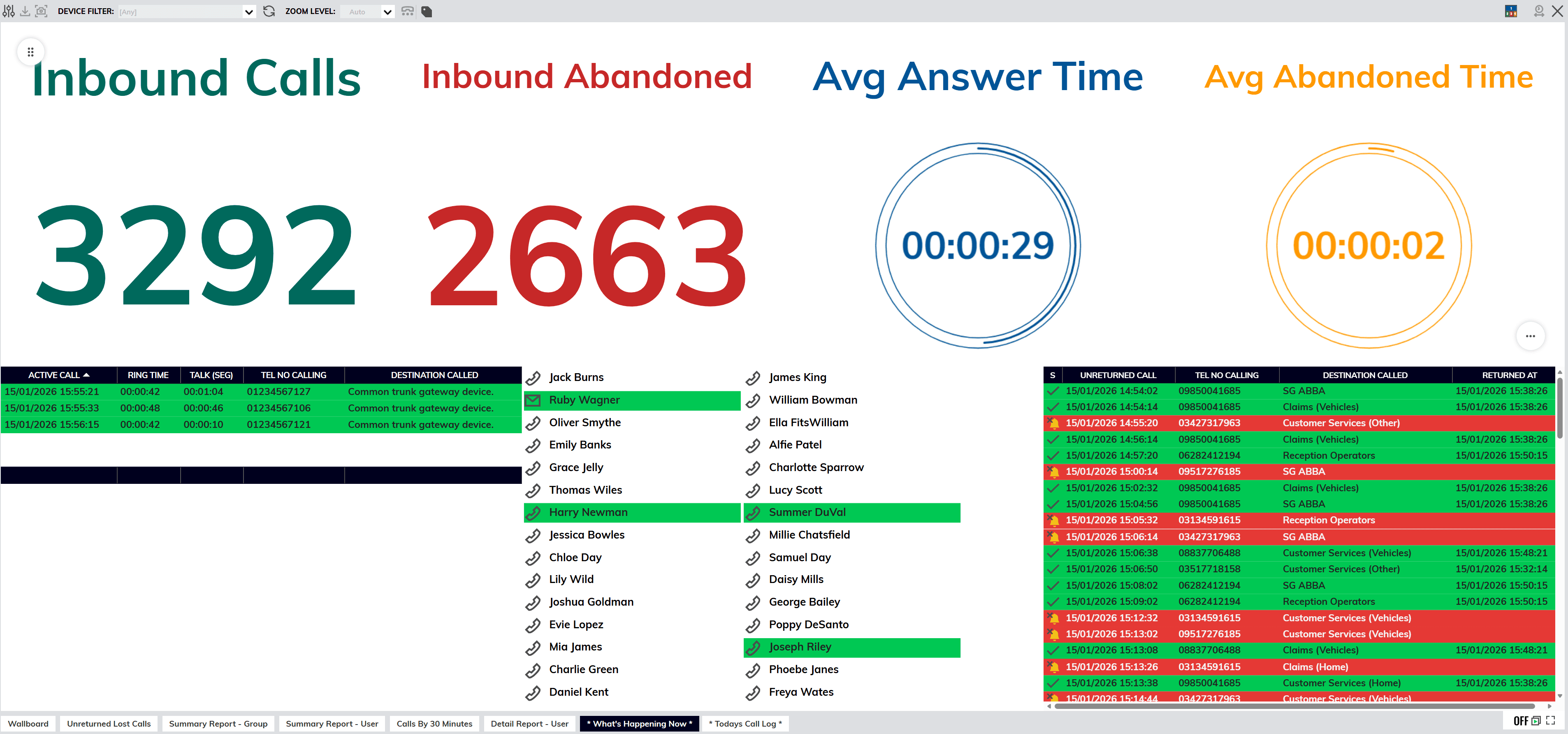 Prove performance instantly with real-time wallboards showing live queues, call volumes and agent activity.