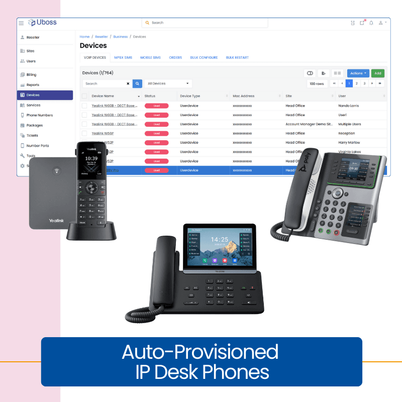 VanillaIP supports auto-provisioned business IP desk phones, enabling Partners to deploy devices quickly while maintaining full control over users and features.