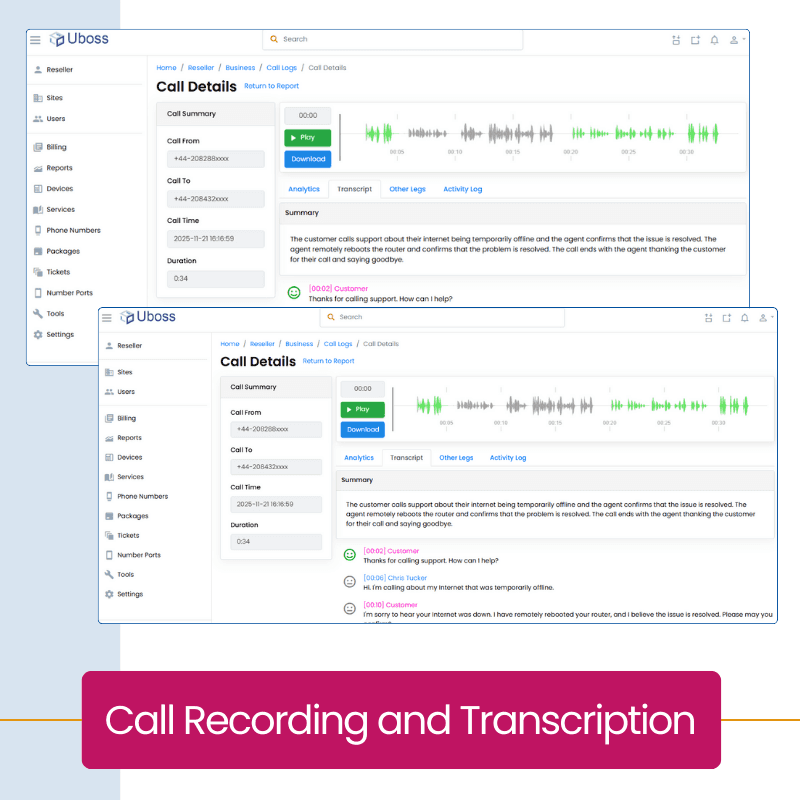 Building UCaaS services based on the Broadsoft platform allows ultimate flexibility to combine multiple other services including call recording, transcription and analytics all within a single environment.