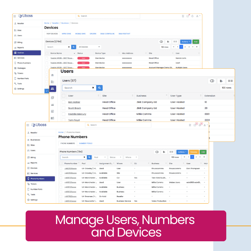 Provision and manage VoIP users, numbers and devices from a single portal.
